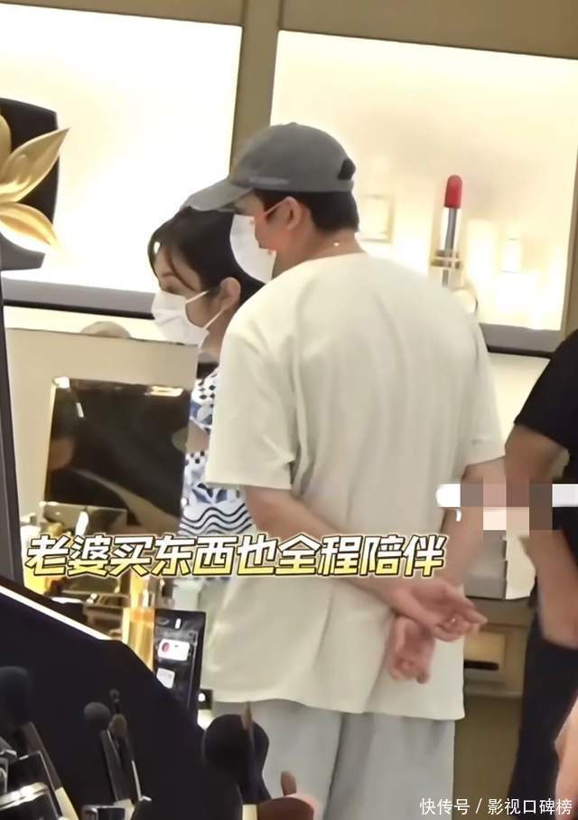 王晓晨与俞灏明逛商场都是慢悠悠的,好像散步似的。他们来到美妆专柜就停下脚步,细细看,很认真。